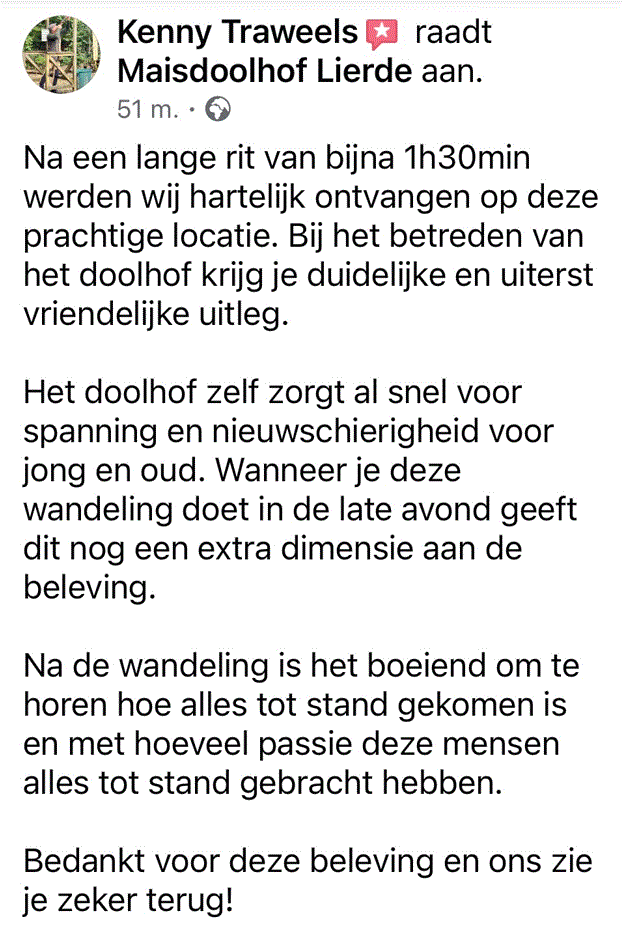 Echt een heel leuk labyrinth om door te lopen met een pittige zoektocht naar stempels. Leuk voor kinderen maar evenzeer voor volwassenen. De tent met zitbank is zeer welkom om even te pauzeren en de frigo met water was een goed idee :) wij komen volgend jaar terug!
